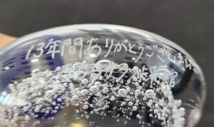 こちらのペーパーウェイトにもお礼のメッセージを彫りました🌟