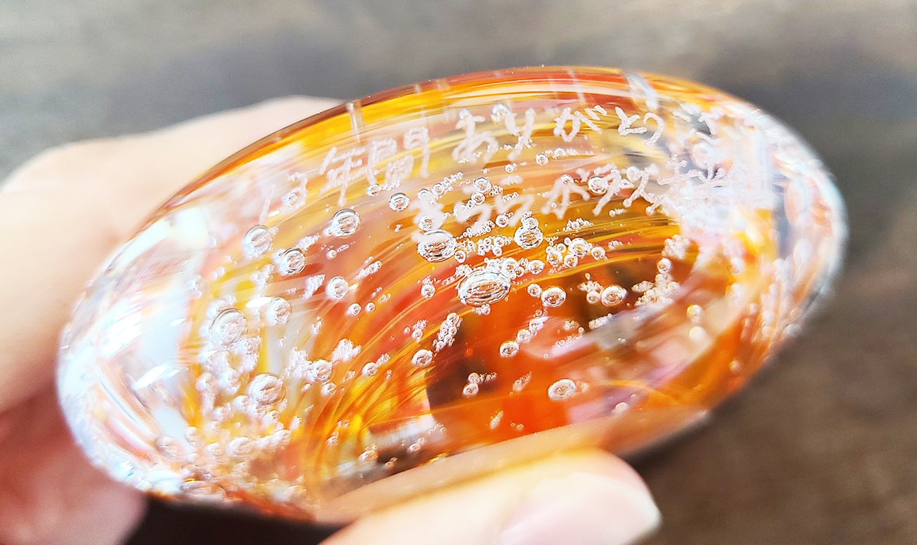こちらのペーパーウェイトにもお礼のメッセージを彫りました🌟